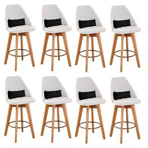 Kit 08 Banquetas Alta Maya Giratória Com Encosto Gourmet Linho Bege E Almofada Corino Preto - Gat Magazine Banqueta Maya Giratória - GAT MAGAZINE A Banqueta Maya possui assento e pés em madeira eucalipto com sistema giratório! Os pés contam com um reforço que proporciona um suporte de peso de até 120 Kgs.O assento é revestido com espuma D-23. Além de bonita e charmosa, vai trazer para seu ambiente elegância e proporcionará conforto para sua família e amigos nos momentos de lazer.