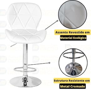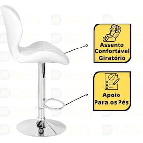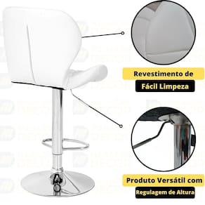 Com o sistema de regulagem de altura via acionamento de pistão pneumático ela permite que a altura de seu assento seja ajustável se adaptando assim perfeitamente em seu ambiente de acordo com a sua necessidade. Possui seu assento e o encosto ergonômico com revestimento em material ecológico (PU), oferecendo o mesmo conforto de uma cadeira