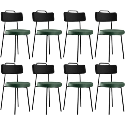 Amplamente moderna, dispondo de muito realce e design singular, o Kit 08 Cadeira Decorativa Estofada Para Sala Jantar Barcelona L02 Couríssimo Preto Facto Verde Musgo - Lyam vem com a personalidade e elegância que sua decoração merece! Estruturada em aço carbono, contrasta lindamente com o encosto e assento estofados, cabe mencionar ainda seu revestimento em Couríssimo e linho, é confeccionada por materiais de excelente qualidade, extremamente resistentes e aconchegantes.