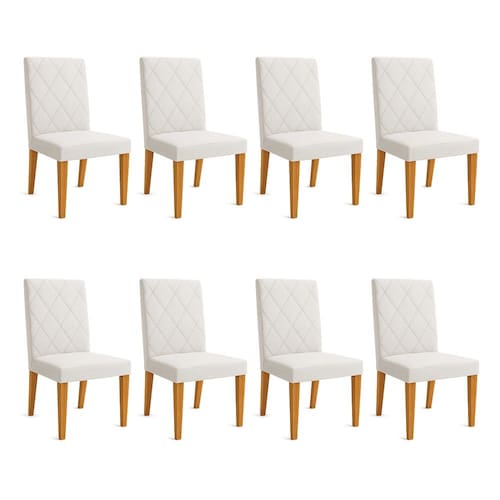 Kit 08 Cadeiras de Jantar Estofada Siena Linho Bege Pés Trapézio Castanho - Pallazio