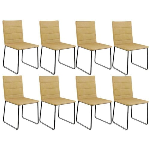 Color: Bege | ColorFamily: Bege | ColorSimple: Bege | ColorSupplier: Fendi | Material: Estrutura em Madeira, Revestimento em Couríssimo e espuma | MaterialFamily: Madeira, couro sintético e espuma | Model: Maya | OriginCountry: Nacional | OriginState: PR | ProductContents: 08 Cadeiras | ProductHeight: 174 cm | ProductInstructions: Produto para uso em ambiente interno, nao devendo ficar exposto ao sol, calor e umidade excessivos. | ProductLength: 106 cm | ProductWarranty: 90 dias após o recebimento do produto | ProductWeight: 52,8 Kg | ProductWidth: 46 cm | SizeDescription: Altura: 174 cm x Largura: 46 cm x Profundidade: 106 cm | SupplierSimpleName: Kit 08 Cadeiras Decorativa Estofada Para Sala De Jantar Preto Maya L02 Couríssimo Fendi - Lyam Decor