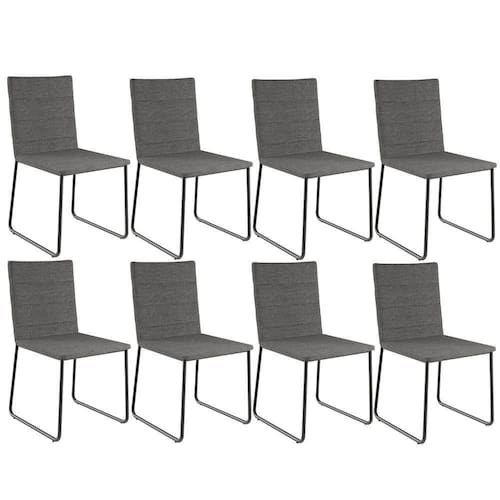Color: Cinza | ColorFamily: Cinza | ColorSimple: Cinza | ColorSupplier: Cinza Escuro | Material: Estrutura em Madeira, Revestimento em Linho e espuma | MaterialFamily: Madeira, linho e espuma | Model: Maya | OriginCountry: Nacional | OriginState: PR | ProductContents: 08 Cadeiras | ProductHeight: 174 cm | ProductInstructions: Produto para uso em ambiente interno, nao devendo ficar exposto ao sol, calor e umidade excessivos. | ProductLength: 106 cm | ProductWarranty: 90 dias após o recebimento do produto | ProductWeight: 52,8 Kg | ProductWidth: 46 cm | SizeDescription: Altura: 174 cm x Largura: 46 cm x Profundidade: 106 cm | SupplierSimpleName: Kit 08 Cadeiras Decorativa Estofada Para Sala De Jantar Preto Maya L02 Linho Cinza Escuro - Lyam Dec
