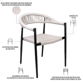 O Kit 08 Cadeiras Decorativas Para Área Gourmet Base Preto Corda Náutica Nevada Amêndoa - Lyam Decor é a peça ideal para decorar e dispor de conforto e comodidade nos momentos de lazer. O destaque aqui vai para o design artesanal com materiais de altíssima qualidade, como a corda náutica que é um material extremamente elegante na fabricação de móveis para área externa, pela sua beleza, resistência e durabilidade, ou seja, sem erro para criar desde uma decoração simples até uma mais ousada e cheia de personalizações. Pode ser usada perto da piscina, no jardim, sala de estar, varanda e onde mais sua criatividade desejar! Garanta já a sua!