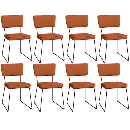O espetáculo que é o Kit 08 Cadeira Decorativa Estofada Para Sala De Jantar Allana L02 Tecido Terracota - Lyam Decor vem para agregar ainda mais valor na decoração da sua casa. Sua estrutura em aço remete-nos ao estilo industrial que surgiu em Nova York no século XX, já o assento e encosto estofados trazem equilíbrio e conforto criando a combinação perfeita para o ambiente. Podendo ser disposta em salas de jantar, cozinha ou espaço gourmet, dentre outras opções, se destaca com muita elegância e presença. Conta com materiais de máxima qualidade e está sempre pronto para recepcionar família e amigos de forma agradável. Você e seu lar merecem, aproveite!!