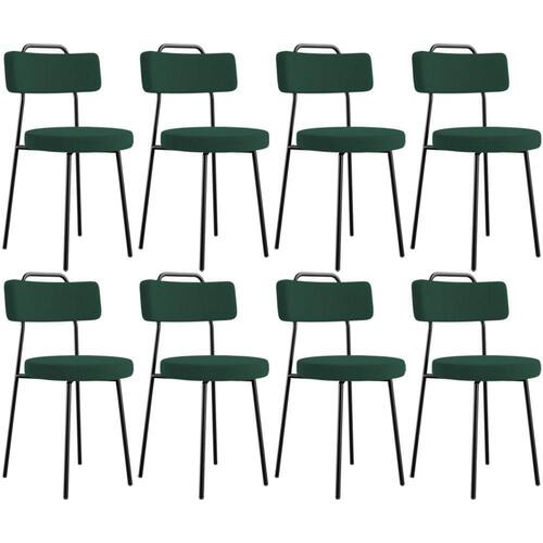 Amplamente moderna, dispondo de muito realce e design singular, o Kit 08 Cadeiras Decorativas Estofadas Para Sala De Jantar Barcelona L02 Bouclê Verde - Lyam Decor vem com a personalidade e elegância que sua decoração merece! Estruturada em aço carbono, contrasta lindamente com o encosto e assento estofados, cabe mencionar ainda seu revestimento em Couríssimo, é confeccionada por materiais de excelente qualidade, extremamente resistentes e aconchegantes.