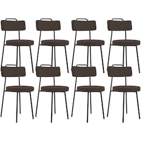 Amplamente moderna, dispondo de muito realce e design singular, o Kit 08 Cadeiras Decorativas Estofadas Para Sala De Jantar Barcelona L02 Suede Marrom - Lyam Decor vem com a personalidade e elegância que sua decoração merece! Estruturada em aço carbono, contrasta lindamente com o encosto e assento estofados, cabe mencionar ainda seu revestimento em Couríssimo, é confeccionada por materiais de excelente qualidade, extremamente resistentes e aconchegantes.