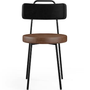 Revestimento do encosto em Couríssimo na cor Preto e do assento em Couríssimo na cor Marrom, com acabamento semi brilho.