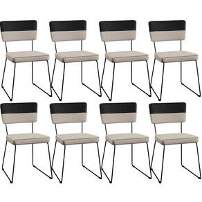 O espetáculo que é o Kit 08 Cadeiras Decorativas Estofada Allana L02 Faixa Corano Preto Linho Bege - Lyam Decor vem para agregar ainda mais valor na decoração da sua casa. Sua estrutura em aço remete-nos ao estilo industrial que surgiu em Nova York no século XX, já o assento e encosto estofados trazem equilíbrio e conforto criando a combinação perfeita para o ambiente.