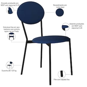 Altura da cadeira: 86 cm | Largura da cadeira: 43 cm | Peso máximo suportado: 120 kg | ColorSupplier: Azul | Cor do estofamento: Azul | Fabricante: Lyam Decor | MaterialFamily: Aço, MDP e Linho | Cor: Azul | Color: Azul | SizeDescription: Altura: 258 cm x Largura: 43 cm x Profundidade: 53 cm | SupplierSimpleName: Kit 08 Cadeiras Estofada Para Sala de Jantar Azuri Preto C01 Linho Azul - Lyam Decor | Firmeza: Firme | OriginState: PR | Profundidade do assento: 42 cm | Largura do assento: NA | Espessura do assento: na | Model: Azuri | ColorSimple: Azul | ProductWarranty: 90 dias após o recebimento do produto | ProductInstructions: Produto para uso em ambiente interno, nao devendo ficar exposto ao sol, calor e umidade excessivos. | ProductWeight: 42 kg | ProductWidth: 43 cm | OriginCountry: Brasil | ProductLength: 53 cm | ProductHeight: 258 cm | Cor da estrutura da cadeira: Preto | Cor do assento: Azul | ProductContents: 08 Cadeiras | Desenho do tecido: Liso | Material do estofamento: MDP, Espuma D22D28 e Linho | É cadeira de balanço: Não | Profundidade da cadeira: 53 cm | É empilhável: Não | Altura do assento a partir do solo: 49 cm | Requer montagem: Não | É dobrável: Não | Tempo de montagem: na | Material: Estrutura em Aço e MDP, Revestimento em Linho | ColorFamily: Azul