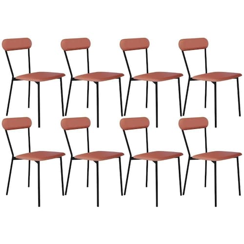SizeDescription: Altura: 243 cm x Largura: 43 cm x Profundidade: 53 cm | ProductInstructions: Produto para uso em ambiente interno, nao devendo ficar exposto ao sol, calor e umidade excessivos. | ProductWarranty: 90 dias após o do produto | Largura da cadeira: 43 cm | Cor: Terra Rosê | OriginCountry: | ProductLength: 53 cm | Altura do assento a partir do solo: 49 cm | Color: Rosa | ProductContents: 08 Cadeiras | ProductWidth: 43 cm | Model: Liora | SupplierSimpleName: Kit 08 Cadeiras Estofada Para Sala de Jantar Liora Preto C01 Courino Terra Rosê - Lyam Decor | OriginState: PR | ColorFamily: Rosa | ColorSimple: Rosa | ColorSupplier: Terra Rosê | Cor do estofamento: Terra Rosê | Fabricante: Lyam Decor | Material: Estrutura em Aço e MDP, Revestimento em Couro sintético e espuma | MaterialFamily: Aço, MDP, Couro sintético e Espuma | ProductHeight: 243 cm | ProductWeight: 5,5 kg | Desenho do tecido: Liso | Cor da estrutura da cadeira: Preto | Cor do assento: Terra Rosê | É cadeira de balanço: Não | Material do estofamento: Espuma D-22 e D-28 | Altura da cadeira: 243 cm | Profundidade da cadeira: 53 cm | Profundidade do assento: 53 cm | Largura do assento: 43 cm | Firmeza: Firme | Espessura do assento: na | Peso máximo suportado: 120 kg | É dobrável: Não | É empilhável: Não | Requer montagem: Não | Tempo de montagem: na
