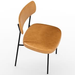 Encosto e assento estofados com espuma laminada, revestidos em Couríssimo na cor Whisky.