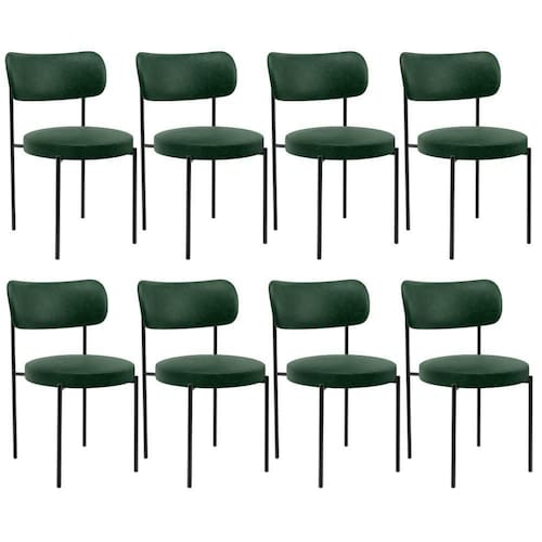 Altura da cadeira: 80 cm | Altura do assento a partir do solo: 47 cm | Color: Verde | ColorFamily: Verde | ColorSimple: Verde | ColorSupplier: Verde | Cor: Verde | Cor da estrutura da cadeira: Preto | Cor do assento: Verde | Cor do estofamento: Verde | Desenho do tecido: Couríssimo | É cadeira de balanço: Não | É dobrável: Não | É empilhável: Não | Espessura do assento: 6 cm | Fabricante: Lyam Decor | Firmeza: Firme | Largura da cadeira: 50 cm | Largura do assento: 46 cm | Material: Tecido, Aço | Material do estofamento: Couríssimo | MaterialFamily: Tecido, Aço | Model: Louise | OriginCountry: | OriginState: PR | Peso máximo suportado: 120 kg | ProductContents: 08 Cadeiras | ProductHeight: 50 cm | ProductInstructions: Produto para uso em ambiente interno, nao devendo ficar exposto ao sol, calor e umidade excessivos. | ProductLength: 124 cm | ProductWarranty: 90 dias após o do produto | ProductWeight: 45,6 kg | ProductWidth: 54 cm | Profundidade da cadeira: 53 cm | Profundidade do assento: 34 cm | Requer montagem: Não | SizeDescription: Altura: 54 cm x Largura: 50 cm x Profundidade: 124 cm | SupplierSimpleName: Kit 08 Cadeiras Estofadas Para Sala De Jantar Louise L02 Couríssimo Verde - Lyam Decor | Tempo de montagem: na