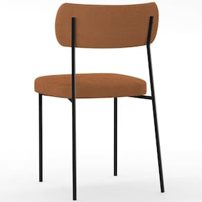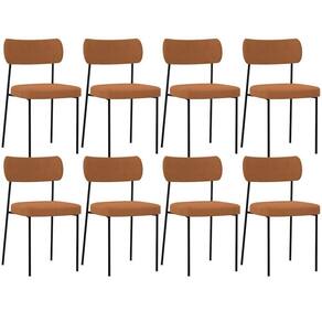 Encosto e assento estofados com espuma laminada. Estrutura fixa em aço carbono com pintura epóxi na cor preto. Revestimento em Bouclê na cor Terracota. Peso suportado: Até 120 kg.