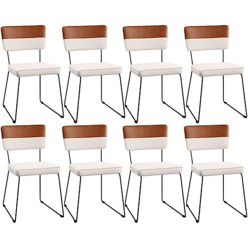 O espetáculo que é o Kit 08 Cadeiras Decorativas Base De Aço Allana L02 Faixa Couríssimo Camel Linho Cru - Lyam Decor vem para agregar ainda mais valor na decoração da sua casa. Sua estrutura em aço remete-nos ao estilo industrial que surgiu em Nova York no século XX, já o assento e encosto estofados trazem equilíbrio e conforto criando a combinação perfeita para o ambiente.