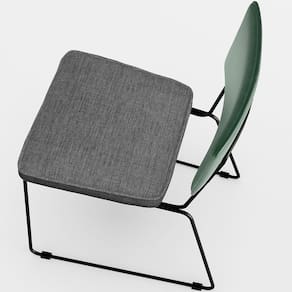 Revestimento do encosto em Facto Verde Musgo de alta qualidade, com acabamento semi brilho.