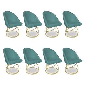 Kit 08 Cadeiras Poltrona de Jantar Bela Suede Azul Turquesa Base Metálica Luxo Dourado - Pallazio