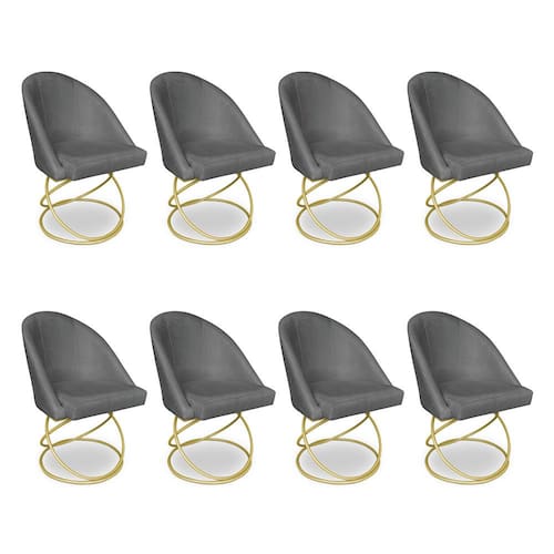 Kit 08 Cadeiras Poltrona de Jantar Bela Suede Bege Base Metálica Luxo Dourado - Pallazio