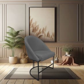 A base metálica em preto confere à cadeira um aspecto industrial moderno, proporcionando um contraste encantador com o tecido em suede. Essa mistura de materiais agrega um ar contemporâneo e luxuoso ao ambiente, além de assegurar estabilidade e durabilidade à peça. O acabamento cuidadoso realça ainda mais a beleza e a qualidade do produto.