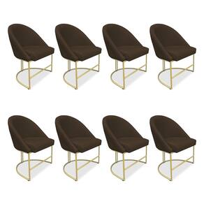 Kit 08 Cadeiras Poltrona de Jantar Bela Suede Marrom Base Metálica Industrial Dourado - Pallazio