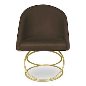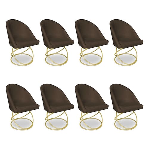 Kit 08 Cadeiras Poltrona de Jantar Bela Suede Marrom Base Metálica Luxo Dourado - Pallazio