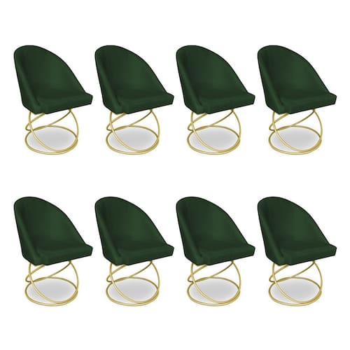 Kit 08 Cadeiras Poltrona de Jantar Bela Suede Verde Base Metálica Luxo Dourado - Pallazio