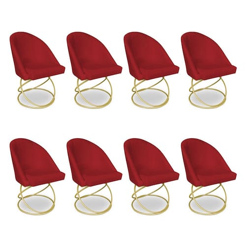 Kit 08 Cadeiras Poltrona de Jantar Bela Suede Vermelho Base Metálica Luxo Dourado - Pallazio