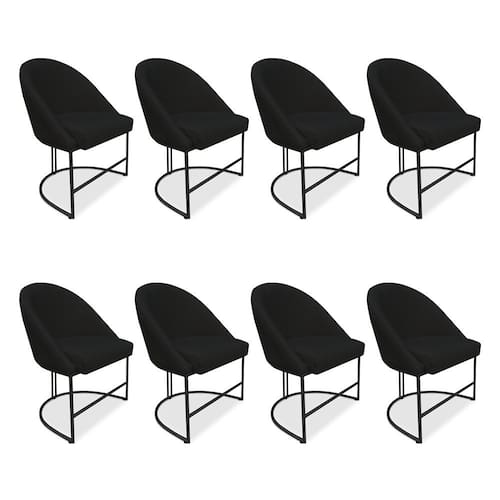 Kit 08 Cadeiras Poltrona de Jantar Bela Veludo Base Metálica Industrial Preto - Pallazio