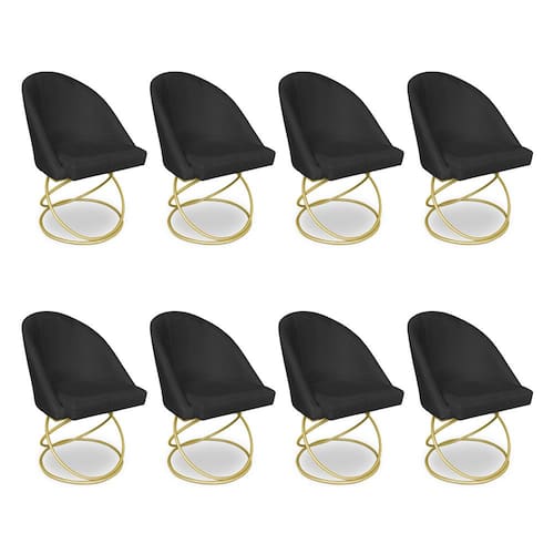 Kit 08 Cadeiras Poltrona de Jantar Bela Veludo Base Metálica Luxo Dourado - Pallazio - Preto