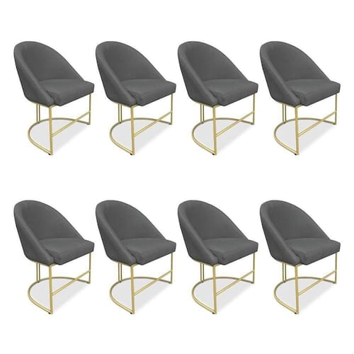 Kit 08 Cadeiras Poltrona De Jantar Bela Veludo Grafite Base Metálica Industrial Dourado - Pallazio