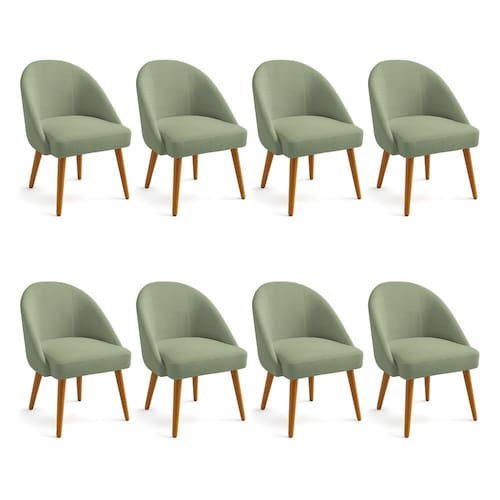 Kit 08 Cadeiras Poltrona de Jantar Estofada Luna Boucle Pés Palito Castanho - Pallazio - Verde