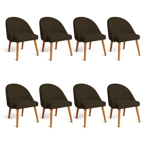 Kit 08 Cadeiras Poltrona de Jantar Luna Suede Marrom Pés Palito Castanho - Pallazio