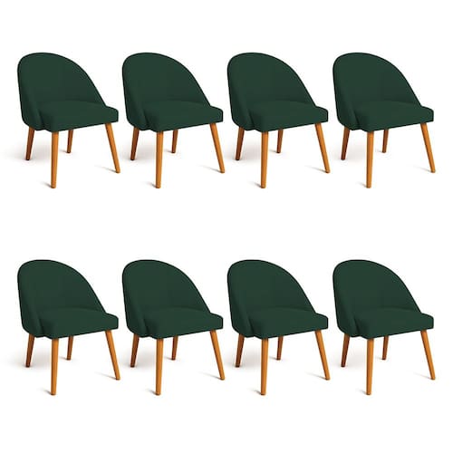 Kit 08 Cadeiras Poltrona de Jantar Luna Suede Pés Palito Castanho - Pallazio - Verde