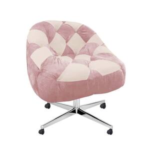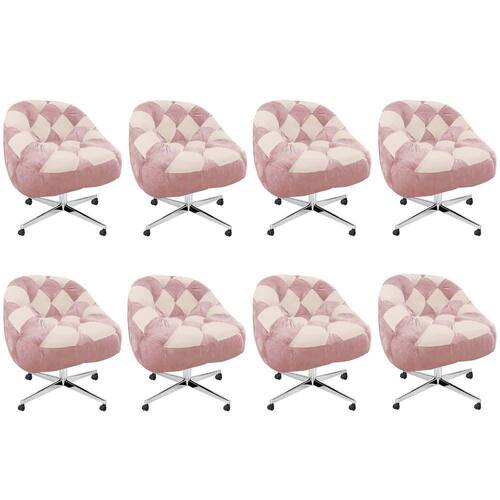 Kit 08 Poltrona Paloma Escritório Sala Giratória Metal Rodízio Corino Rosa Bebê E Corino Bege - Dominic Decor
