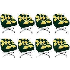 Kit 08 Poltrona Paloma Escritório Sala Giratória Metal Rodízio Corino Verde E Corino Amarelo - Malessa Decor