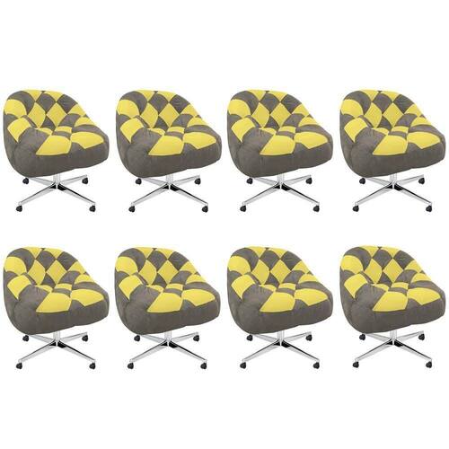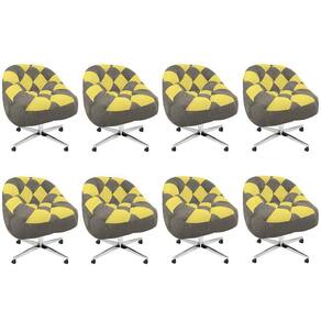 Kit 08 Poltrona Paloma Giratória Metal Rodízio Suede Cappuccino E Suede Amarelo