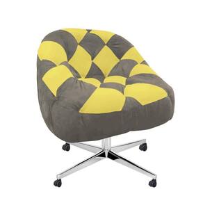 Kit 08 Poltrona Paloma Escritório Sala Giratória Metal Rodízio Suede Cappuccino E Suede Amarelo - Malessa Decor
