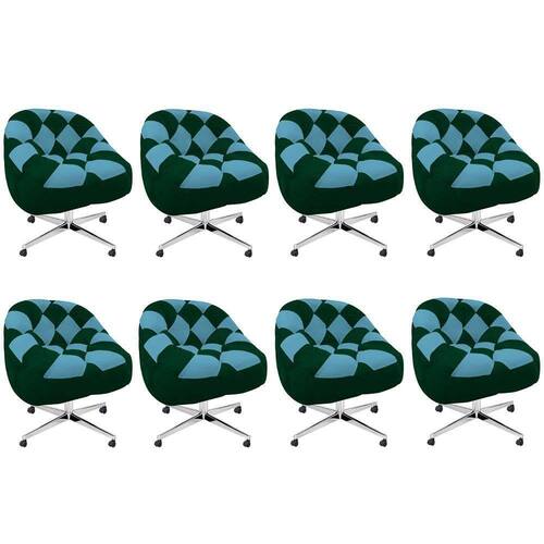 Kit 08 Poltrona Paloma Escritório Sala Giratória Metal Rodízio Suede Verde E Suede Azul Turquesa - Malessa Decor