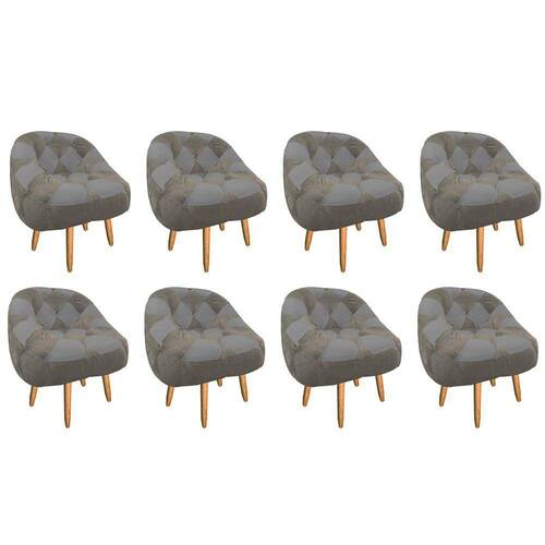 Kit 08 Poltrona Paloma Pé Palito Suede Cappuccino E Suede Cinza