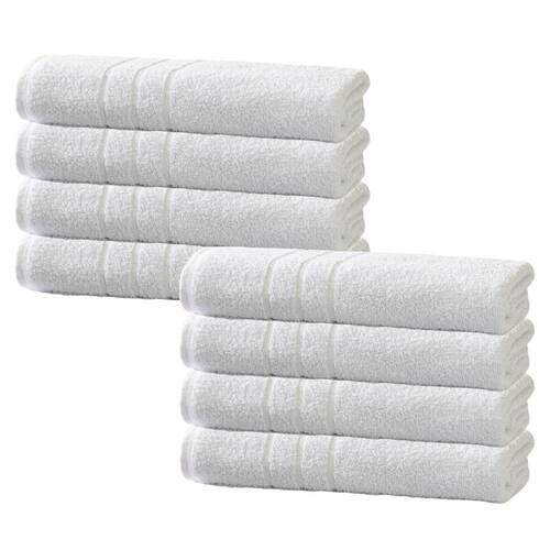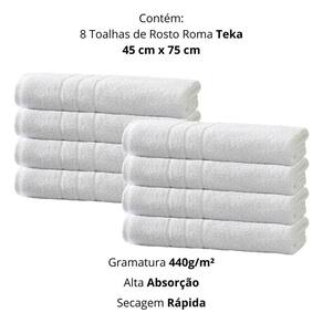 Contém: 08 peças 08 toalhas de rosto profiline roma 0,45x0,75m Alta absorção e maciez Resistência à lavagem industrial e ao cloro Gramatura: 440g/m Cor: branca