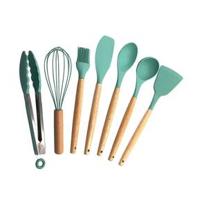 Kit 08 Utensílios Cozinha Silicone Verde Escuro Livre de BPA