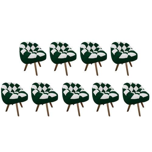Kit 09 Poltrona Paloma Giratória Madeira Sintético Verde E Sintético Branco