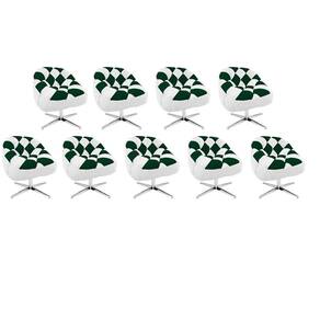 Kit 09 Poltrona Paloma Giratória Metal Corino Branco E Corino Verde