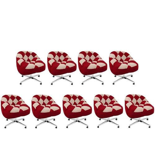 Kit 09 Poltrona Paloma Giratória Metal Rodízio Sintético Vermelho E Sintético Bege Rosado