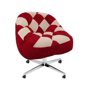 Kit 09 Poltrona Paloma Escritório Sala Giratória Metal Rodízio Sintético Vermelho E Sintético Bege Rosado - Malessa Decor