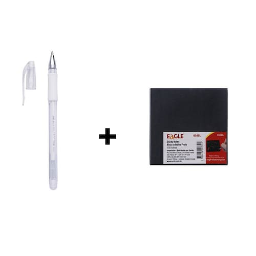 01-Caneta em Gel Grip Branca 08.mm - Molin 01-Bloco Adesivo Preto 75x75mm - Eagle
