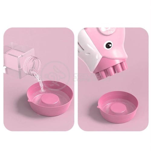 Conteúdo da Embalagem - 1 x Golfinho Bolhudo; - 1 x Recipiente para auxílio; - 1 x Frasco de mistura mágica. - 3 x Pilhas AA