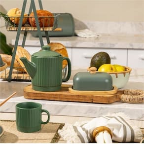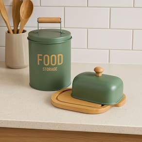 Nosso kit de porta mantimentos e manteigueira podendo ser usada para servir qualquer tipo de manteiga, o nosso kit é ideal para modernizar sua cozinha e a manteigueira é uma louça essencial para você ter na sua Mesa Posta. É a combinação perfeita de funcionalidade e estilo. Feita em aço galvanizado de alta qualidade, com sua base de bambu e puxador em madeira, foi projetada para resistir ao uso diário, mantendo sua beleza e funcionalidade ao longo do tempo. Item indispensável para aqueles que gostam de uma mesa bela e bem posta, além de prática, é um item decorativo que valoriza qualquer ambiente. De fácil higienização, a Manteigueira Enjoy deve ser limpa somente com um pano úmido, e está pronta novamente para uso. Ean: 7894564487413