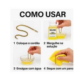 Kit 1 limpa folheados chapeados maxim 250ml grande + 1 flanela pano mágico polir Descrição do produto: O limpa chapeados maxim é um produto específico para limpar semijóias e fácil de usar. Atenção para o modo de usar Modo de usar: - passe o limpa chapeados maxim na semijóias banhada folheada ou cobre utilizando algodão. - enxágue em água corrente e enxugue bem com uma flanela mágica. Descarte o algodão. - para objetos maiores, utilize um recipiente de vidro ou plástico com imersão da peça por 10 segundos apenas. - lave bem o recipiente utilizado. - descarte o produto em água corrente. - não risca e nem desgasta a prataria. - limpa chapeados maxim retira a oxidação e a gordura, deixando ainda, uma camada de proteção no objeto.