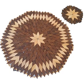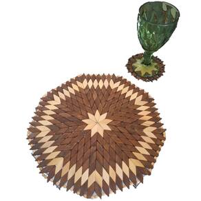 Kit 1 Lugar (Jogo) Americano + 1 Porta Copos Redondos Marrom-Marfim confeccionado em madeira, composto por peças pintadas e envernizadas, em cores diversas, em formato de losângulo, com acabamento nas bordas.