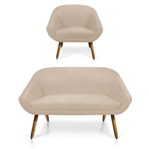 Do nosso grande sucesso Giovana apresentamos para você o Kit 01 Namoradeira e 01 Poltrona, esse Kit traz consigo um toque de delicadeza por conta do formato arredondado de seu encosto, garantindo além de muito conforto uma personalidade única para seu ambiente. Ele vai deixar seu ambiente decorado e pronto para receber suas visitas, família e amigos. Produzido em madeira reflorestada de eucalipto, é estofado em Espuma D-26 e possuí seus pés em madeira, garantindo uma maior resistência e durabilidade ao produto. Dimensões da Poltrona Altura total: 86 cm Largura total: 79 cm Profundidade total: 70 cm Altura do encosto: 44 cm Largura do assento: 50 cm Profundidade do assento: 52 cm Altura do chão ao assento: 47 cm Espessura do assento: 17 cm Tamanho dos pés: 30 cm Espessura do braço: 9 cm Peso: 14 kg Dimensões da Namoradeira Altura total: 85 cm Largura total: 132 cm Profundidade total: 70 cm Altura do encosto: 45 cm Largura do assento: 105 cm Profundidade do assento: 52 cm Espessura do assento: 17 cm Tamanho dos pés: 30 cm Peso: 18 kg Especificações do Produto Estrutura: Madeira Eucalipto Espuma: Prorelax D-26 Tecido: Suede (100% Poliéster) Tipo de pés: Pés Palito Castanho 30 cm Peso Suportado: Até 120 Kg Garantia: 90 dias contra defeito de fabricação Montagem: Os produtos vão montados, apenas rosquear os pés Instruções de Limpeza: Utilizar um pano limpo e levemente úmido Você irá receber: 02 volumes com 02 produtos Observações Relevantes - Todos os produtos vão embalados com total segurança; - As cores dos produtos podem sofrer alterações dependendo do seu monitor; - Para futuras compras, não garantimos a mesma tonalidade de cor, pois existe variação a cada lote do fabricante do tecido; - As imagens são meramente ilustrativas, não acompanham objetos de decoração e eletros; - Confira as dimensões do produto no momento da compra e certifique-se de que passará normalmente por escadas, elevadores, portas e corredores; - Importante: Por se tratar de estofado as medidas podem ter uma pequena variação em até 3 cm; - Não nos responsabilizamos no ato da entrega por montagens, desmontagens, instalações de produtos; - Não nos responsabilizamos no ato da entrega por subir escadas, elevadores, nem utilização de guinchos ou equipamentos similares para acesso a pisos superiores em apartamentos; - A entrega do produto é realizada em todo território nacional, até onde as rodovias alcançam, entregas fluviais ou aéreas devem ser cotadas a parte; - Observando as orientações acima, evita-se futuros desagrados ou imprevistos com a entrega do produto. Havendo despesas adicionais, serão de responsabilidade do cliente;